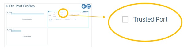 - The port is provisioned with an enabled eth-port profile, service port or authenticated eth-port that has its trusted flag true: Trusted
