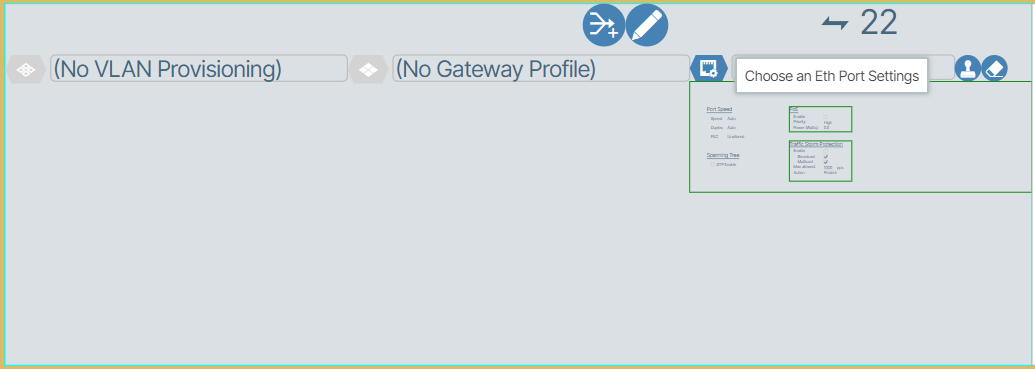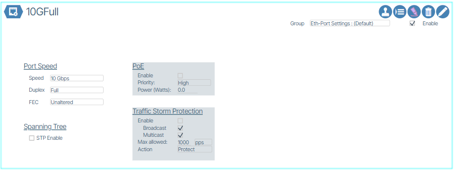 Eth-Port Settings allow the operator to define settings specific to a port related to Layer-1 and Layer-2 features such as port speed, speed/duplex negotiation, and Power-over-Ethernet (PoE).