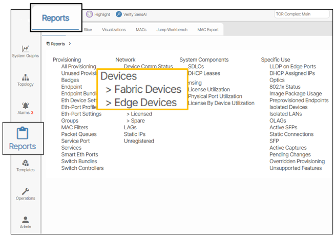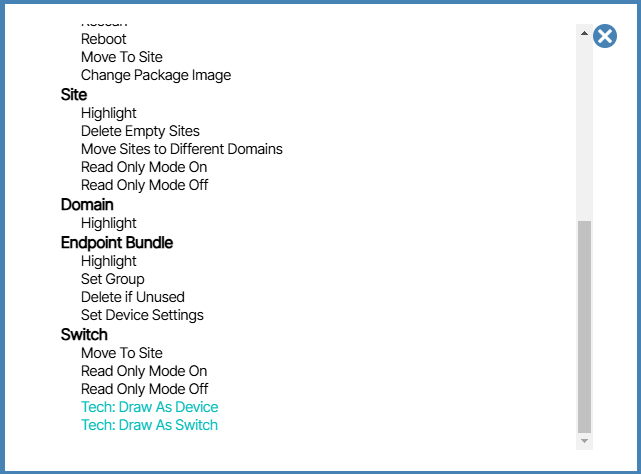 Navigating to Reports/Device Reports/Actions provides more options to work with sites, domains and devices.