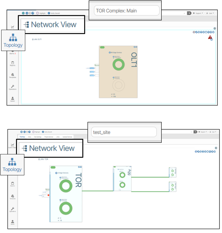 For example, the Network View topology reflects different site selections.
