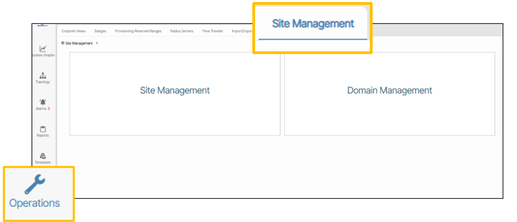 To view Site Management and Domain Management go to Operations / Site Management. These sections provide report information and let you manually create new site and domain objects.