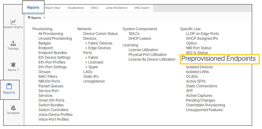 Preprovisioned Endpoints is a Report that lists endpoints whose corresponding devices have not yet been identified.