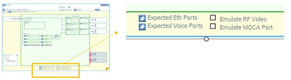 In pre-provisioned endpoints, you check the boxes shown below to display the Application or the MOCA Eth-Port.
