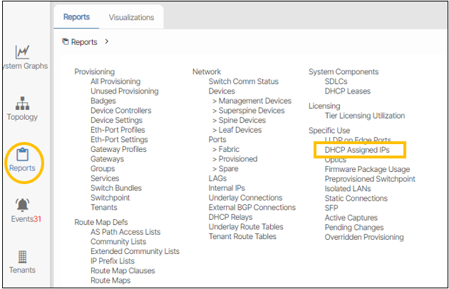 To view DHCP assigned IP addresses go to Reports/DHCP Assigned IPs