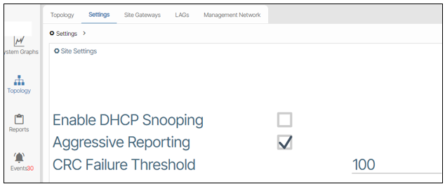 To enable DHCP snooping navigate to Topology/Site Settings and check the box next to Enable DHCP Snooping