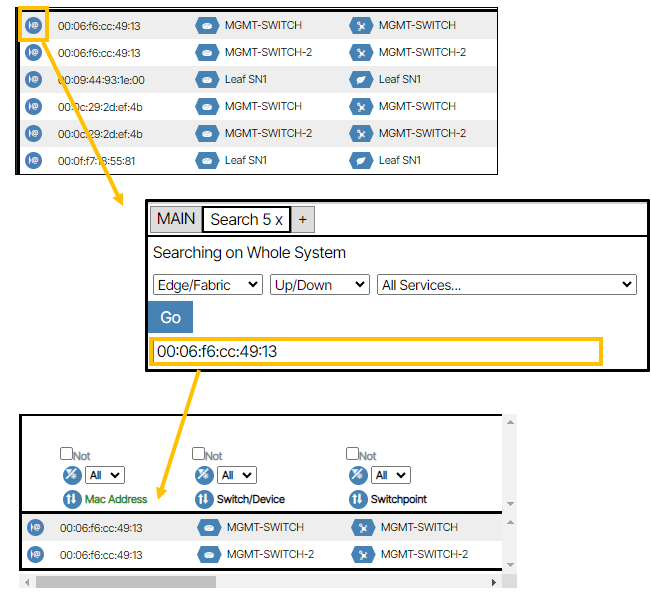 opens a new tab to search on the corresponding mac address