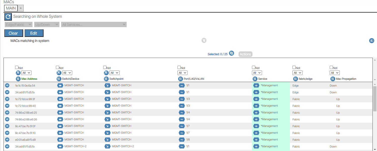 Everon™ Network Solutions provides the ability to display MAC addresses across the entire system.