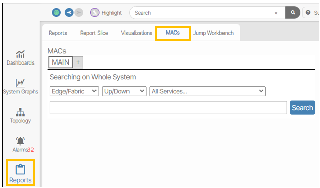The Mac Address Workbench lets you search device by mac address. Clicking the Search button without specifying a mac address displays all devices