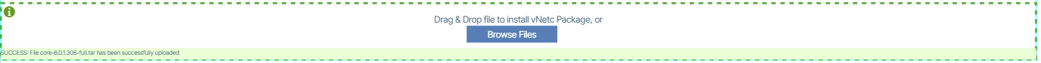 - Using the Browse Files (or drag and drop) field, import the vNetC Core Upgrade file provided by Corning.