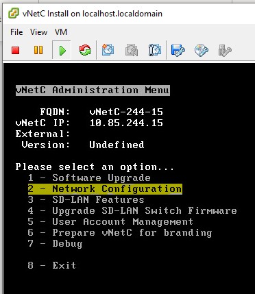 This step requires you to configure the vNetC with an IP address and Fully Qualified Domain Name (FQDN). To do so, you need to open the VM console: virsh console vnetc