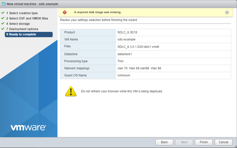 | SDLC VM Image | SDLC-x_x_x_x.ova | VMware OVA | Resources including vCPU and memory should be adjusted based on iVN resource needs documentation. Networking will need to be altered to the correct virtual switch names used in the server |