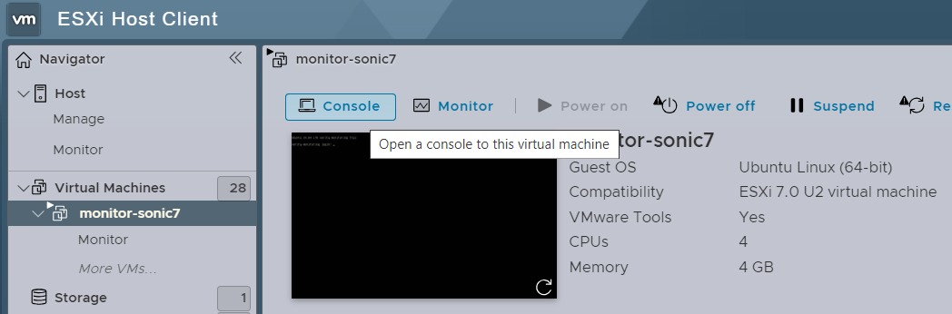 - Select the SDLC from the VMWARE ESXi interface and click the Console tab.