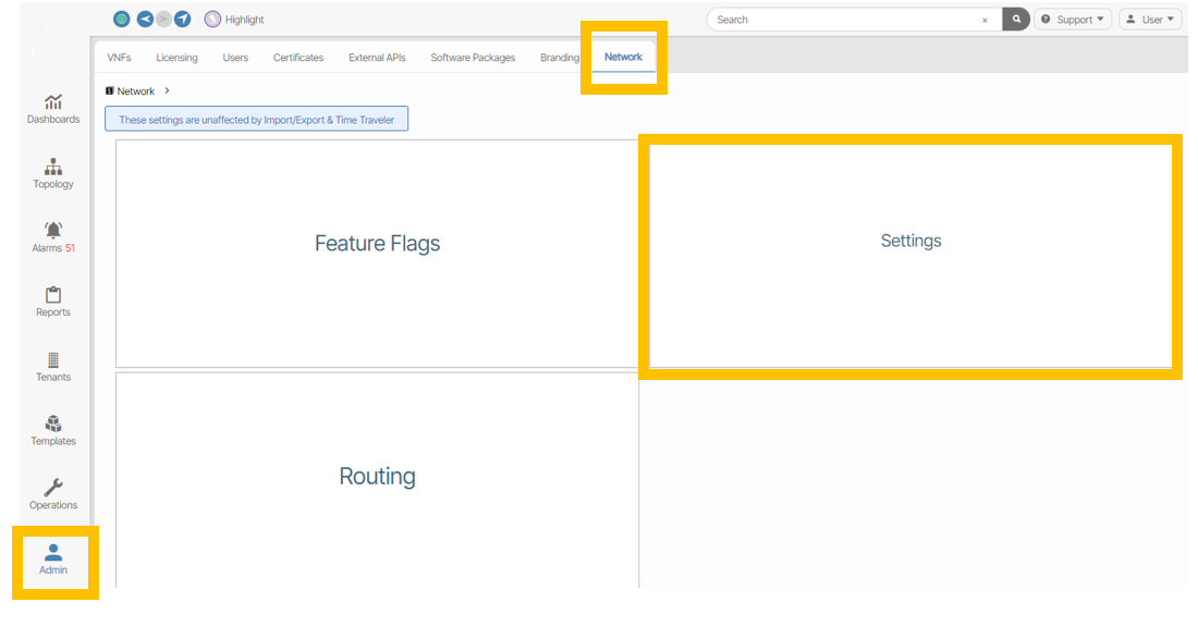 - Click the Admin icon then click the VNFs panel.