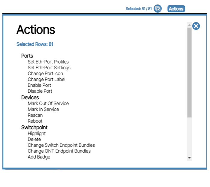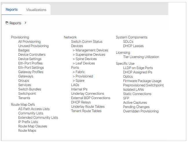 Reports are tabular views of provisioned objects and detected elements within the network. Reports can be easily filtered and customized to create individual operator-specific reporting on any element in Corning Everon. Reports also support bulk actions applied to multiple selected objects.