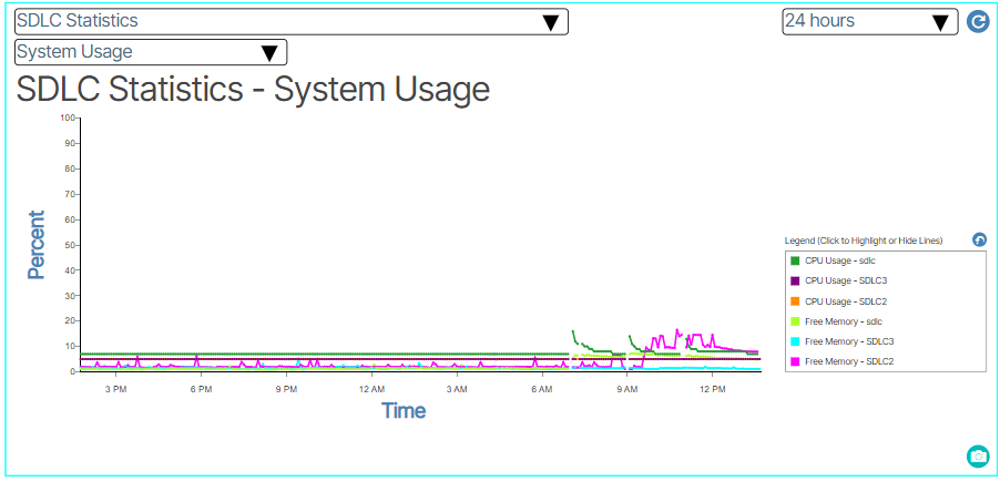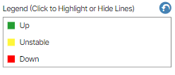 The Legend provides data lines for unstable, down, preprovisioned and up. Data lines can be shown, highlighted, or hidden by clicking the square icon next to each item.