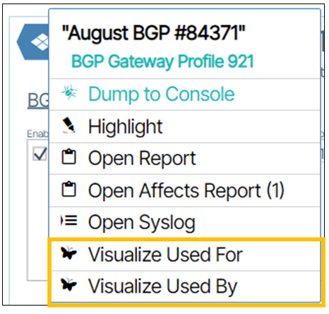 - You select Visualize Used For or Visualize Used By in the provisioning objects Hex button selection menu.