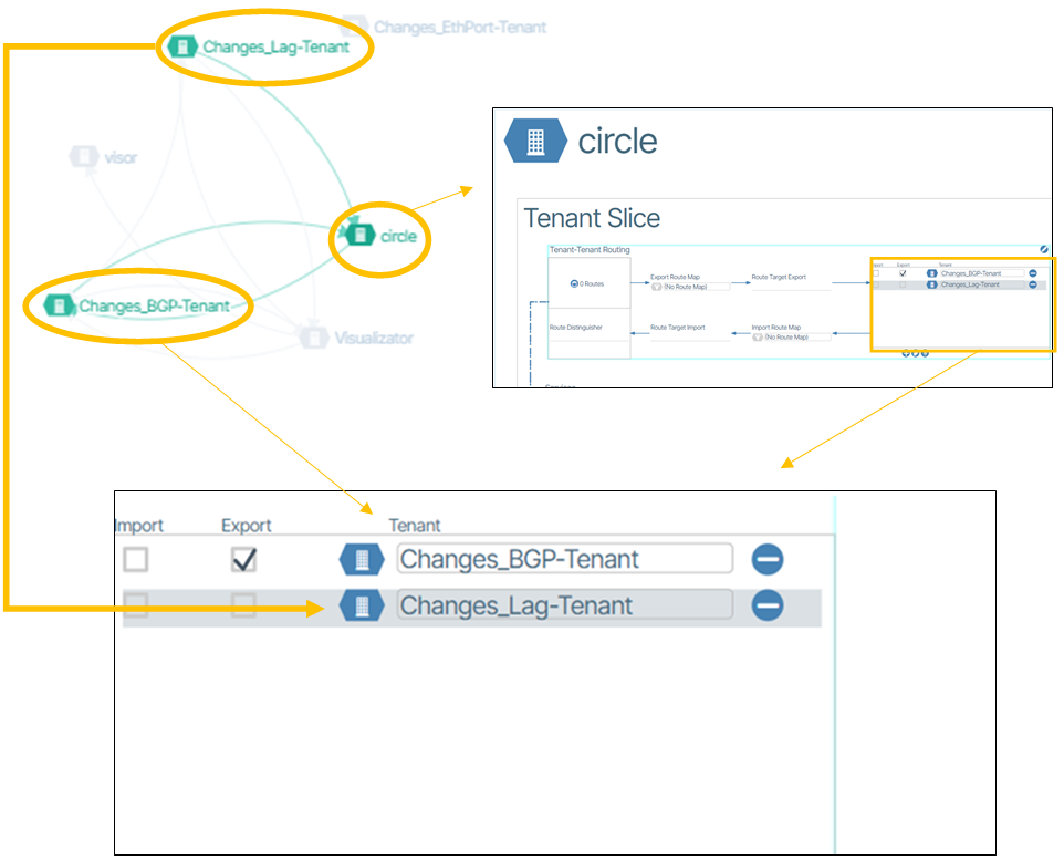 These relationships are reflected in the Tenant Slice window in Tenant-Tenant Routing.