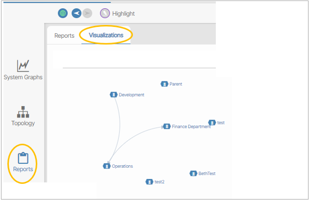 - Open Visualizations via the Reports icon and click the Visualizations menu tab.